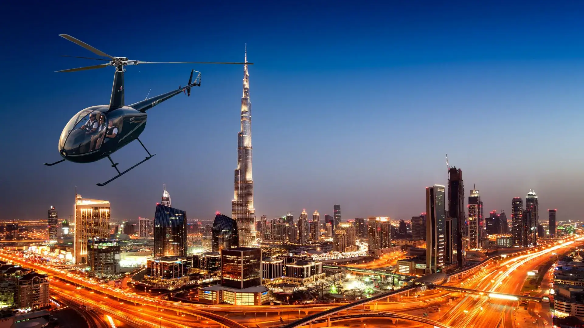Complete helicopter tours covering all major landmarks – Dubai night helicopter tour available
